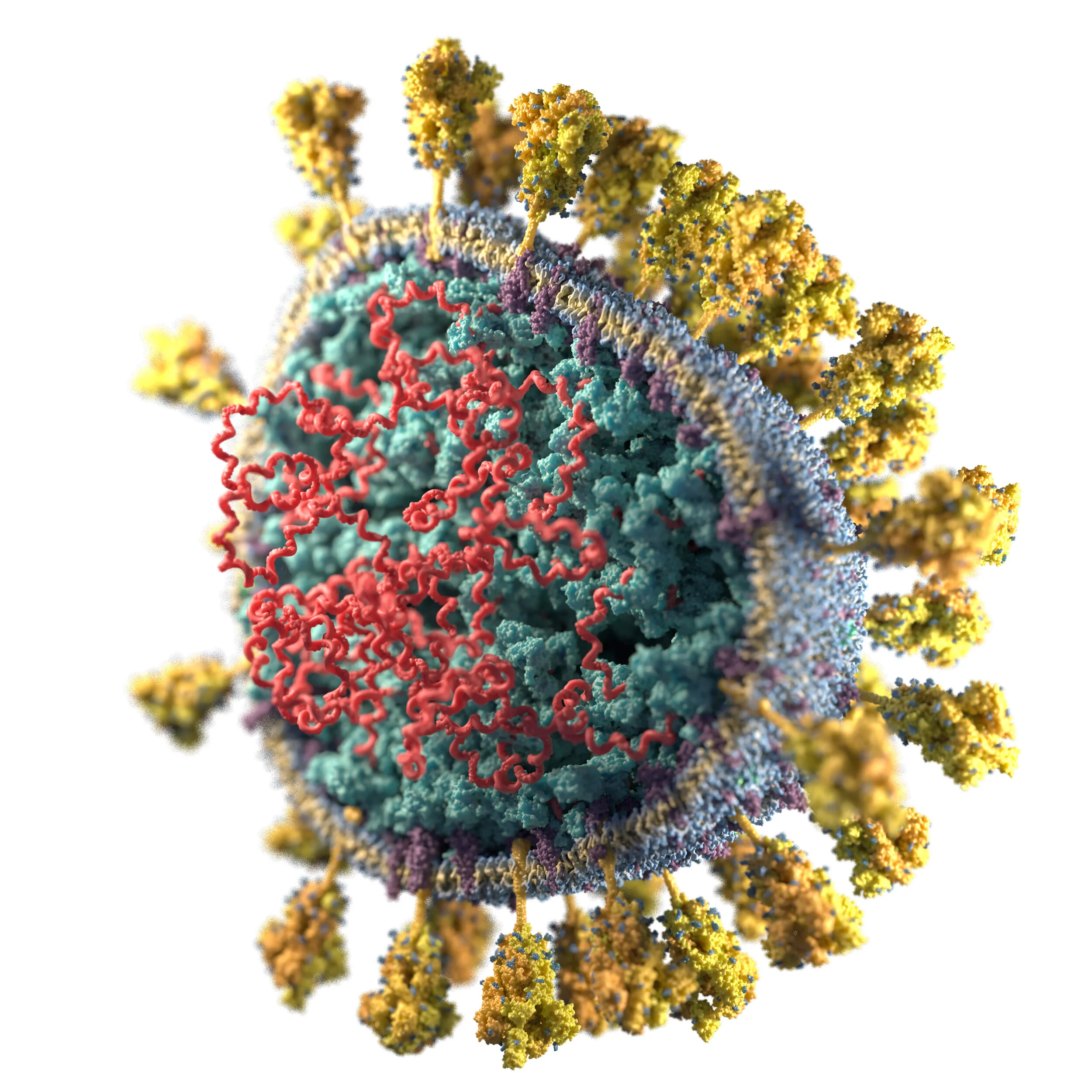 Movement in the animated version is artistic license intended to convey the dynamic nature of the virus, and is not based on molecular dynamics simulation, temperature factors, or other data sources.